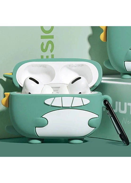 Силиконовый футляр Cartoons&Heroes для наушников AirPods 3 + карабин Дракон зеленый