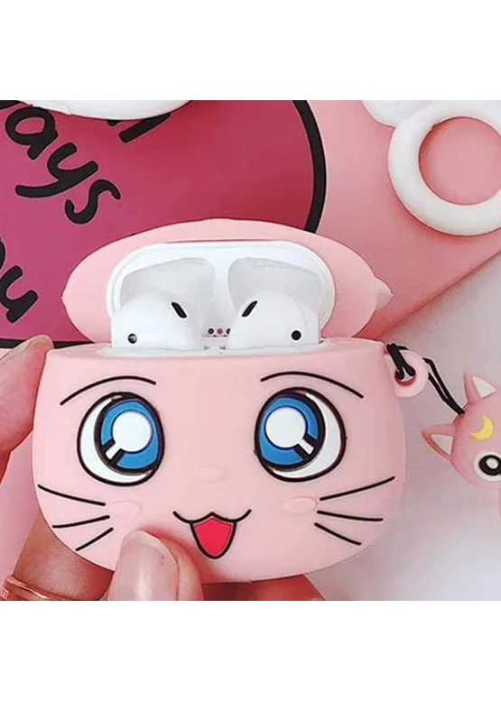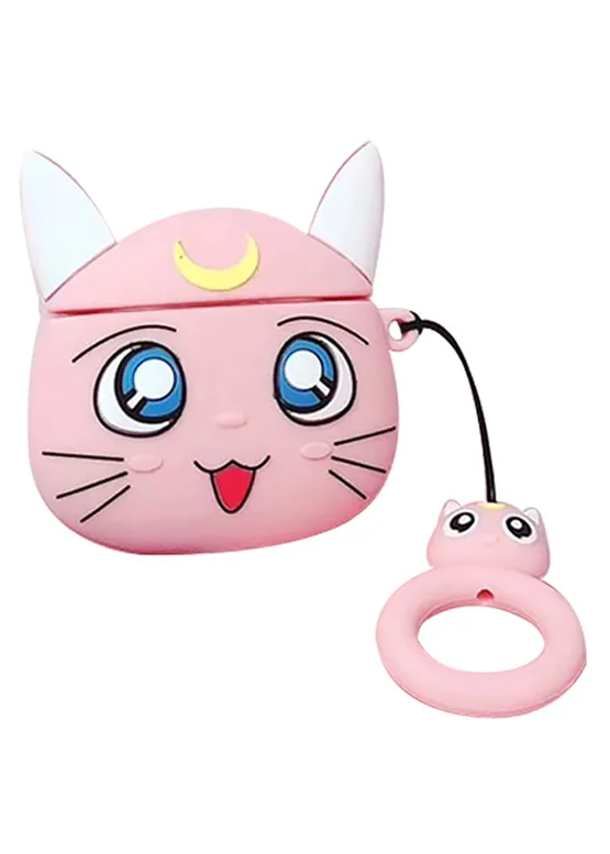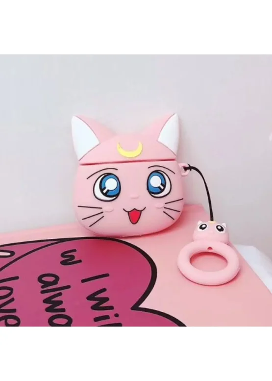 Силиконовый футляр Anime для наушников AirPods 1/2 + кольцо Кот Луна / Розовый