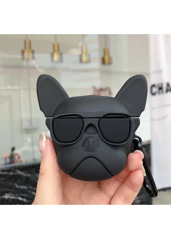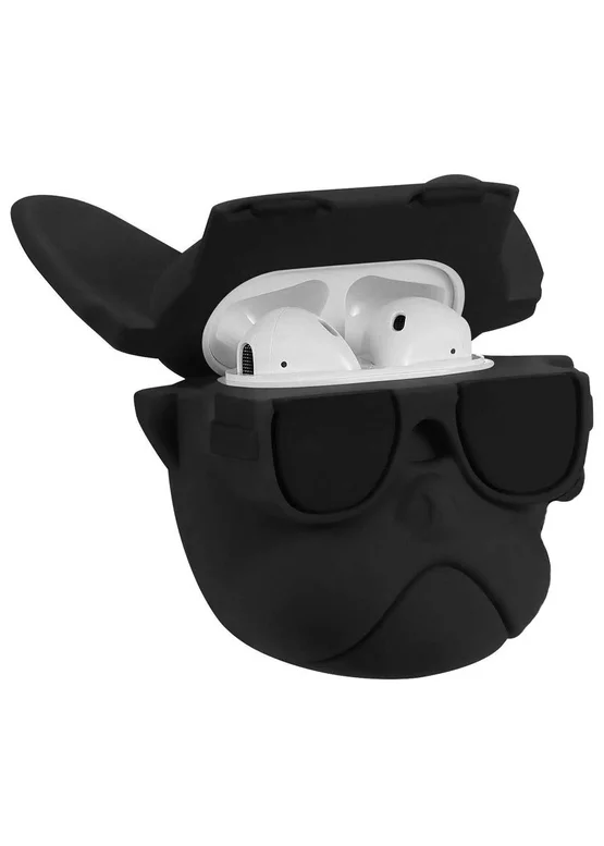 Силиконовый футляр Bulldog для наушников AirPods + карабин (Бульдог / Черный)