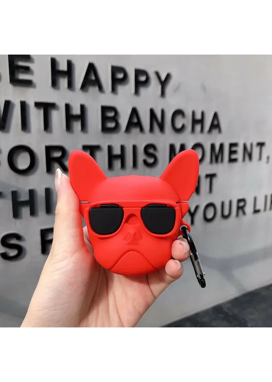 Силиконовый футляр Bulldog для наушников AirPods + карабин (Бульдог / Красный)