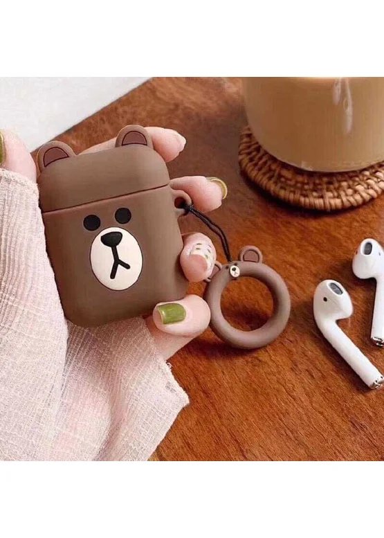 Силиконовый футляр Cartoons&Heroes для наушников AirPods 1/2 + кольцо Мишка