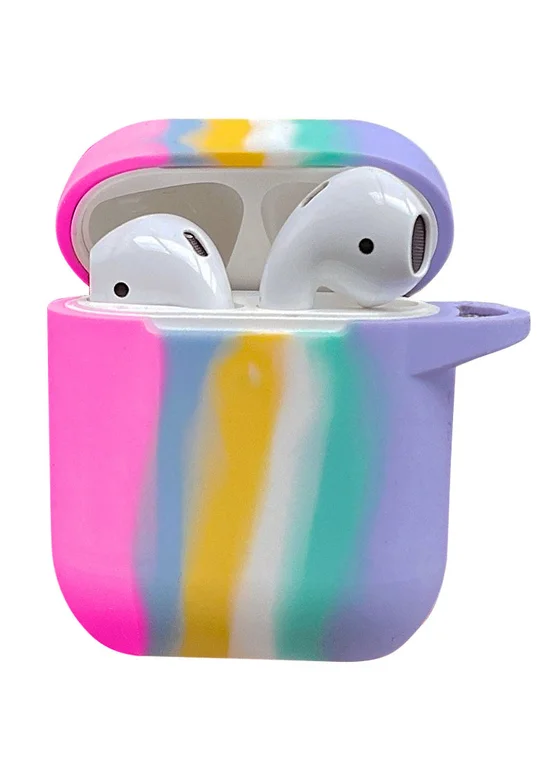 Силиконовый футляр Colorfull для наушников AirPods 1/2 Темно-розовый / Голубой
