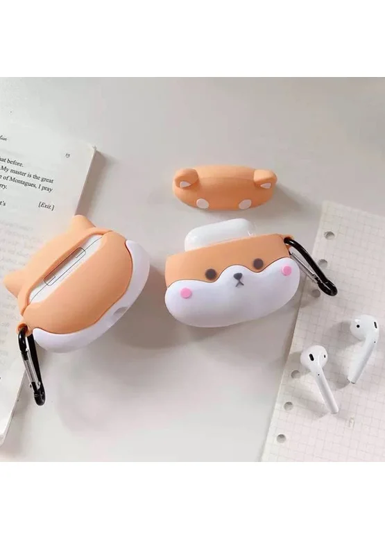 Силиконовый футляр Dogs для наушников AirPods 1/2 Corgi head / Рыжий