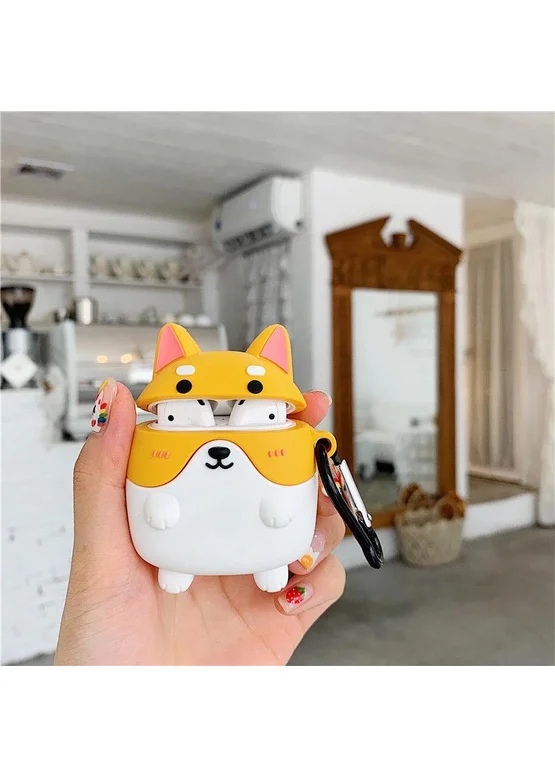 Силиконовый футляр Dogs для наушников AirPods (Корги / Рыжий)
