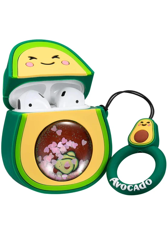 Силиконовый футляр Fruits series with Sparcles & Water для наушников AirPods + кольцо (Avocado / Зеленый)