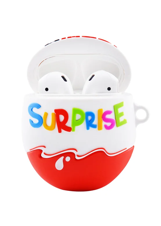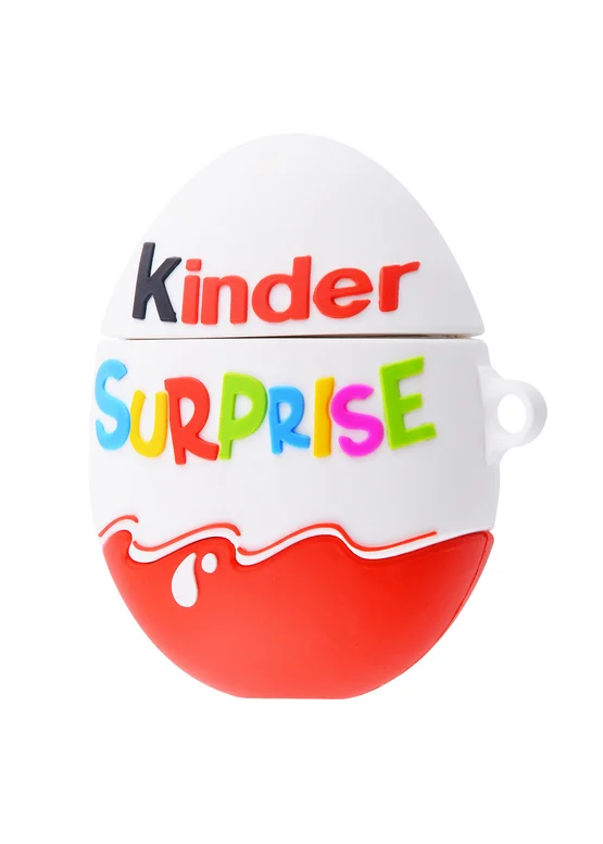 Силиконовый футляр Kinder Surprise с карабином для наушников AirPods (Kinder Surprise / Красно-белый)