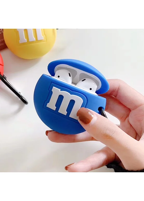 Силиконовый футляр M & M`s с карабином для наушников AirPods2 (Синий)