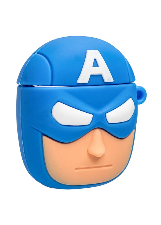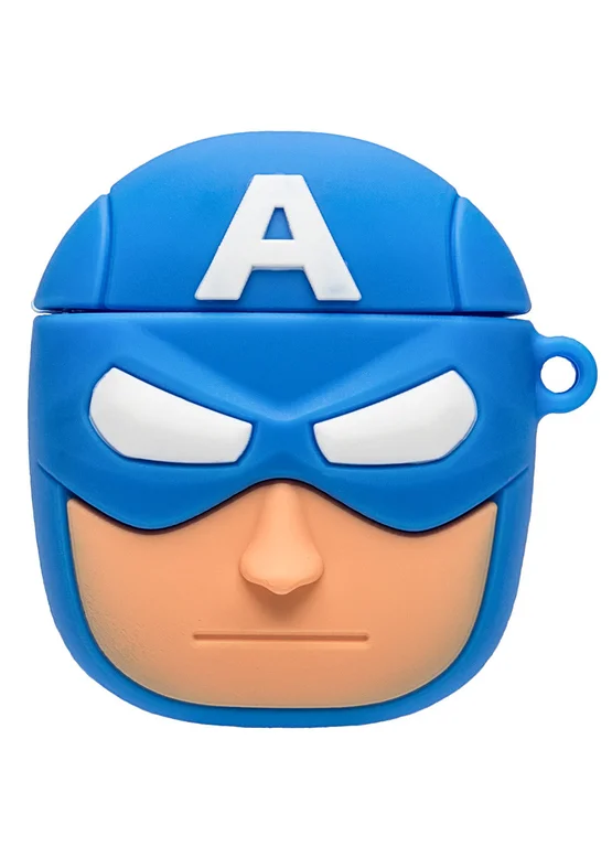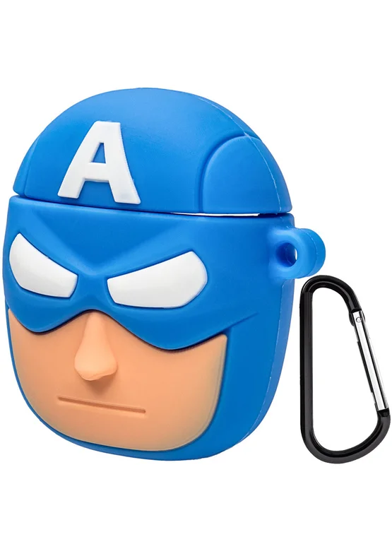 Силиконовый футляр Marvel & DC series для наушников AirPods + карабин Капитан Америка/Синий