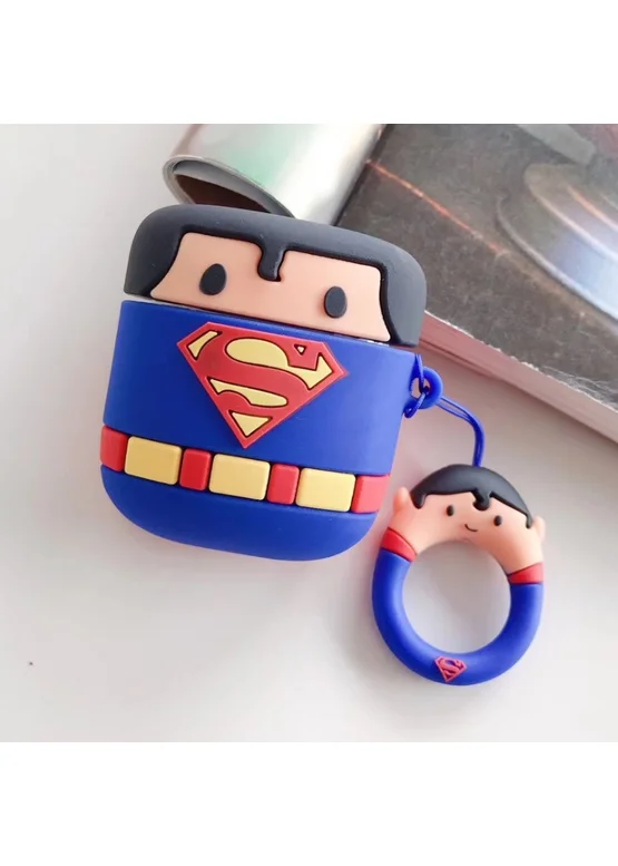 Силиконовый футляр Marvel & DC series для наушников AirPods2 + кольцо (Супермен/Синий)