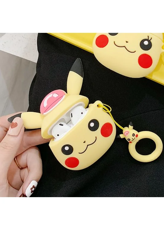 Силиконовый футляр Pokemon series для наушников AirPods + кольцо (Детектив Пикачу / Желтый)