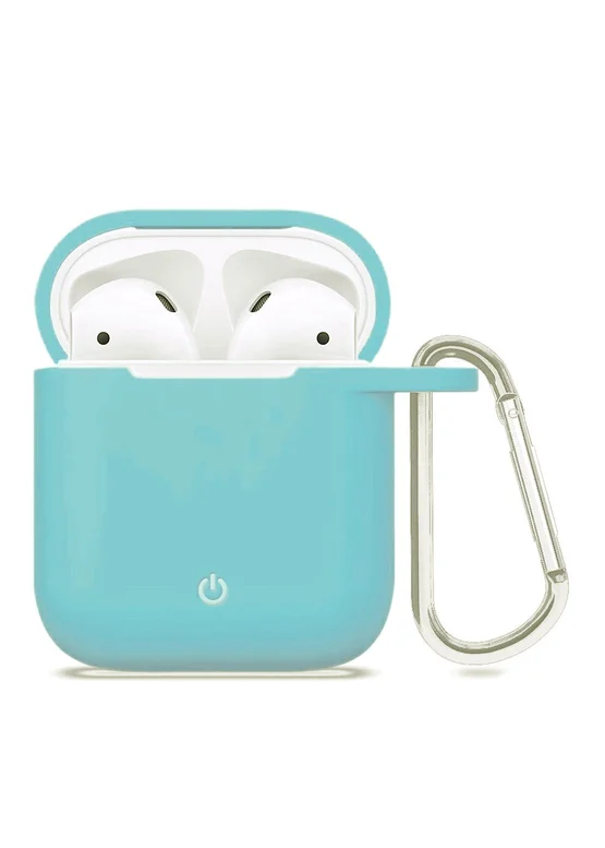 Силиконовый футляр с карабином для наушников AirPods (Бирюзовый / Ice Blue)