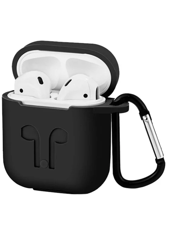 Силиконовый футляр Silicone Case + карабин для наушников AirPods (Черный)