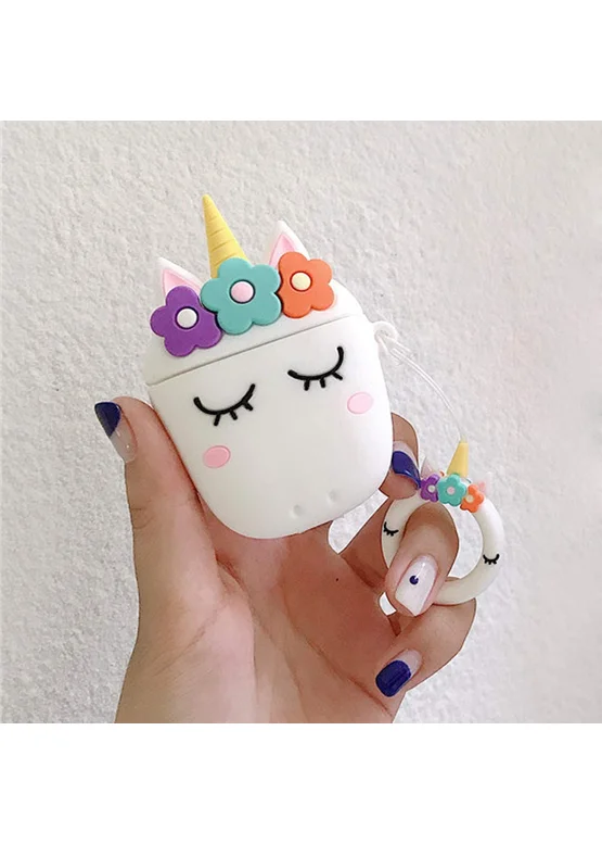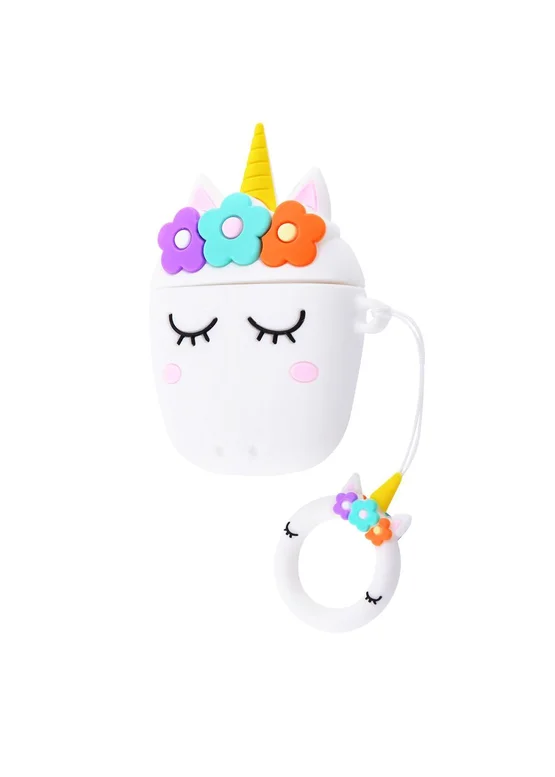 Силиконовый футляр Sleep Unicorn series для наушников AirPods + кольцо (Белый)