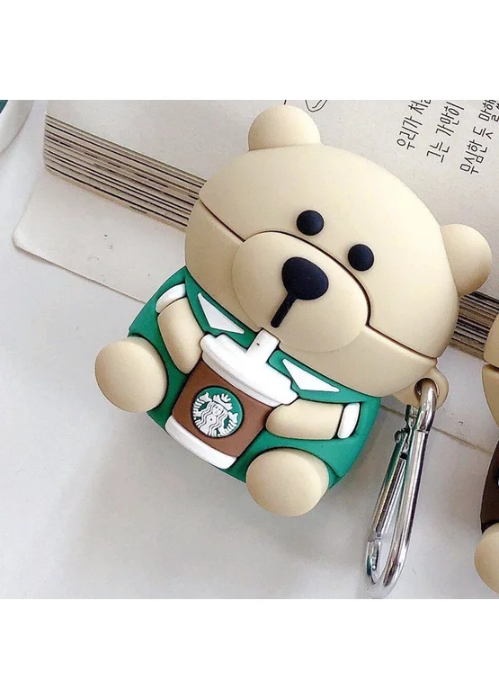 Силиконовый футляр Teddy Bear для наушников AirPods (Медведь / Бежевый)