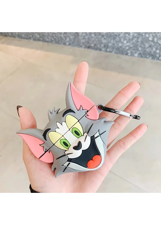 Силиконовый футляр Tom & Jerry series для наушников AirPods + карабин (Том/Серый)