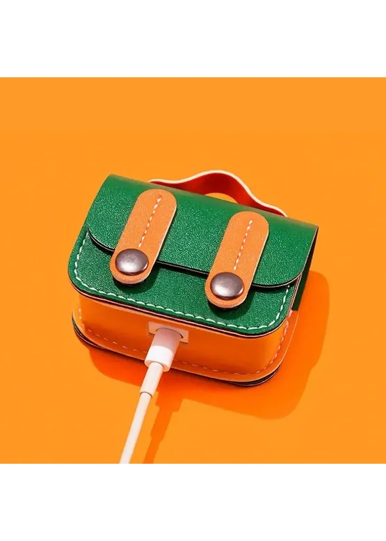 Кожаный футляр Briefcase для наушников AirPods Pro 2 / Pro Green / Orange