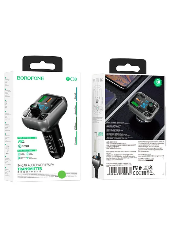 АЗУ FM модулятор Borofone BC38 Flash Energy PD20W+QC3.0 Черный