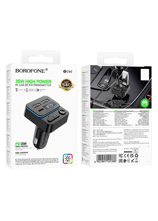 АЗУ FM модулятор Borofone BC60 Hero 35W (2USB-A/1C)