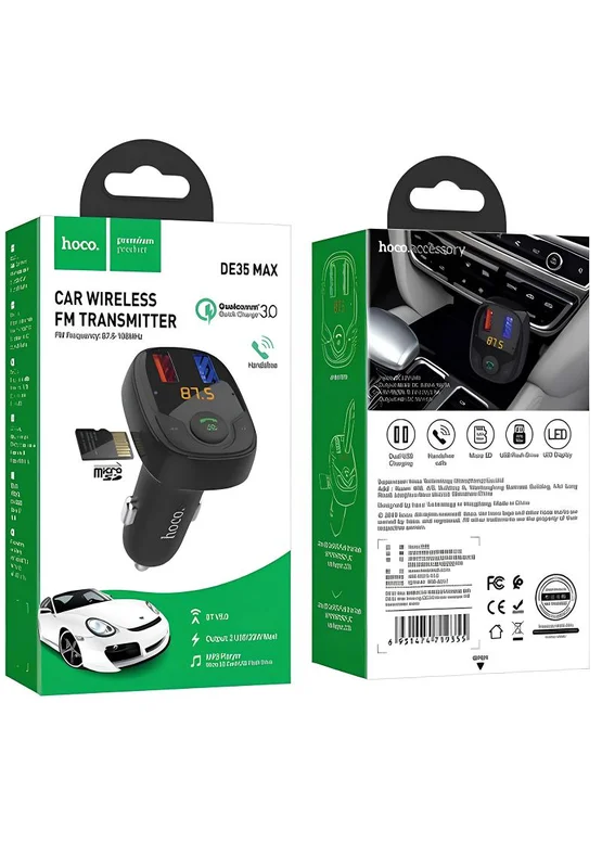 АЗУ FM модулятор Hoco DE35 Max 18W (2USB-A)