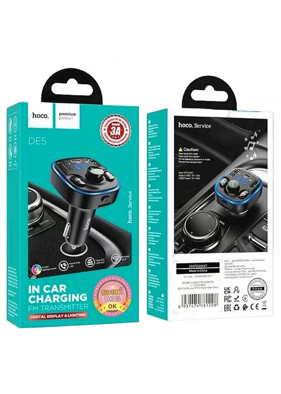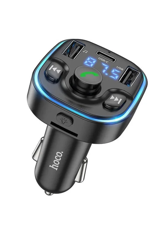 АЗУ FM модулятор Hoco DE5 PD20W+QC3.0 (2USB-A/1C) Black