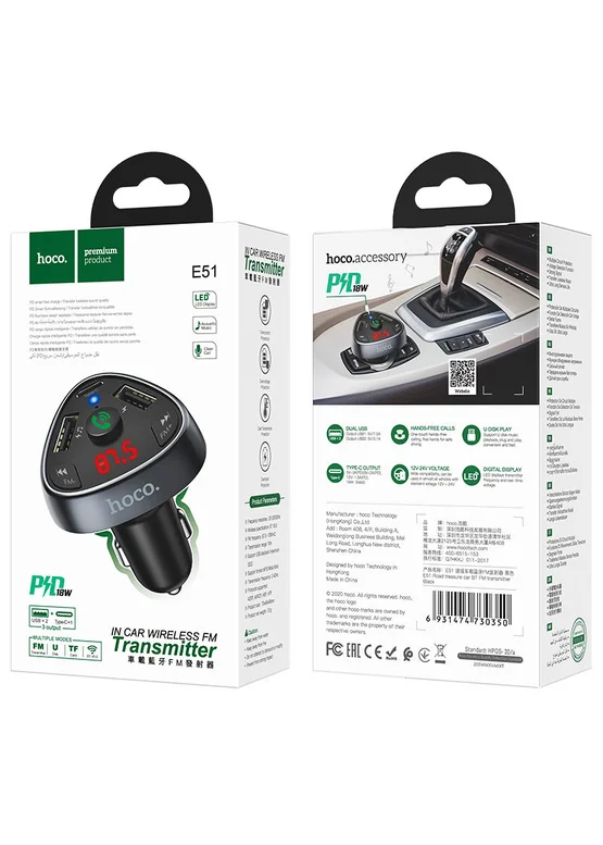 АЗУ FM модулятор HOCO E51 (Черный)