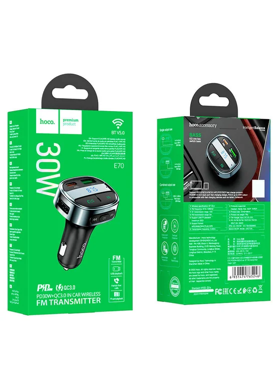 АЗУ FM модулятор HOCO E70 PD30W+QC3.0 Черный