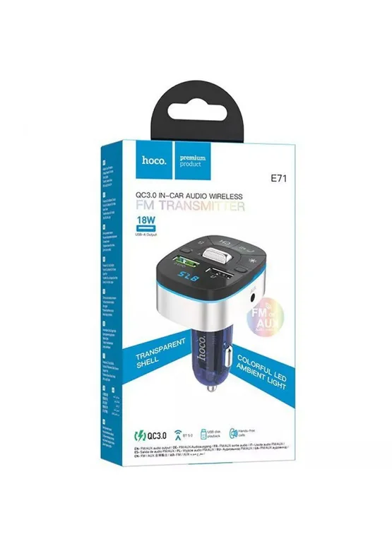 АЗУ FM модулятор Hoco E71 Crystal transparent QC3.0 Dark blue
