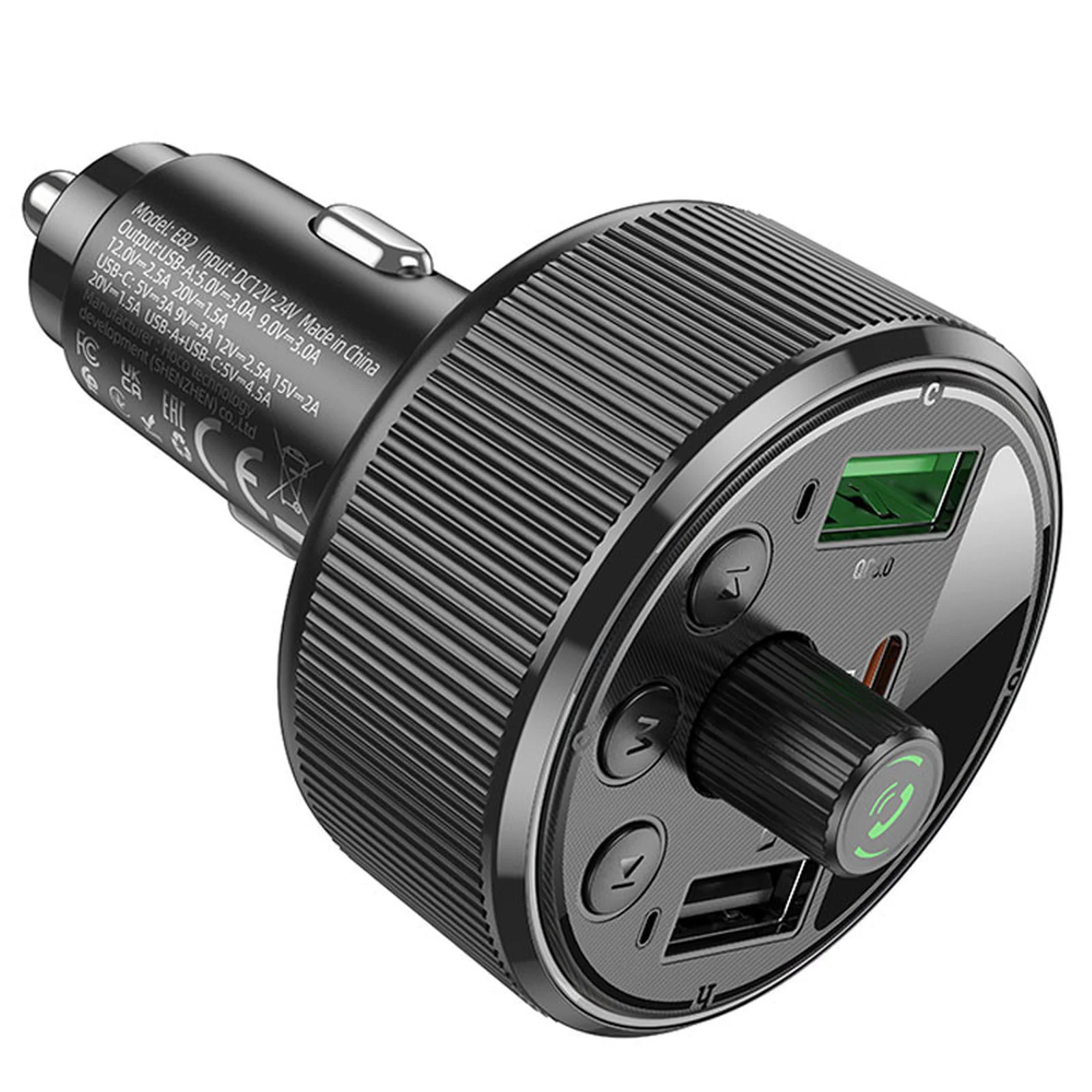 АЗУ FM модулятор Hoco E82 Guerrero PD30W+QC3.0 (2USB-A/1C)