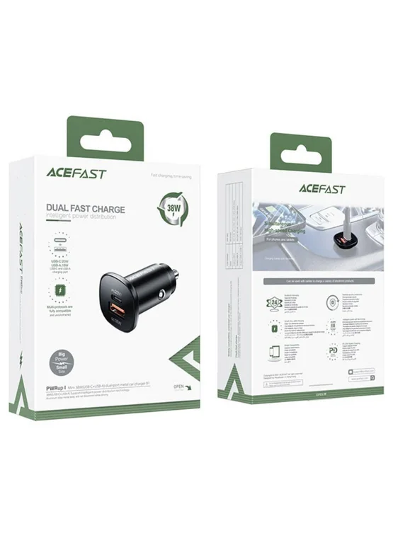 АЗУ Acefast B1 mini 38W (USB-C+USB-A) dual-port metal car charger Black