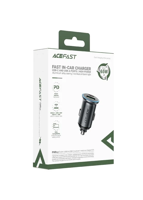 АЗУ Acefast B15 PD20W+QC3.0 total 65W (1USB-A/1C) Gray
