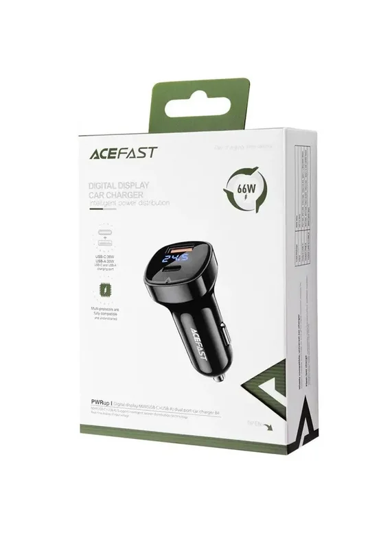 АЗУ Acefast B4 digital display 66W(USB-C+USB-A) dual port Black