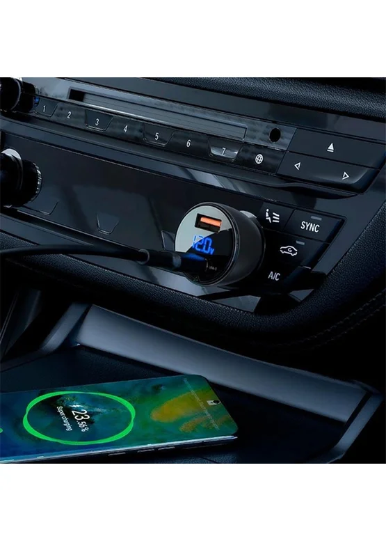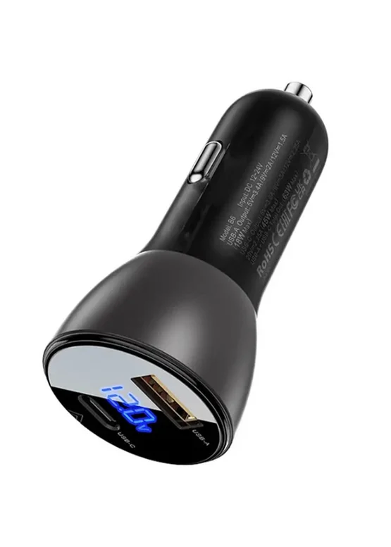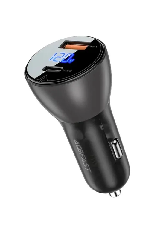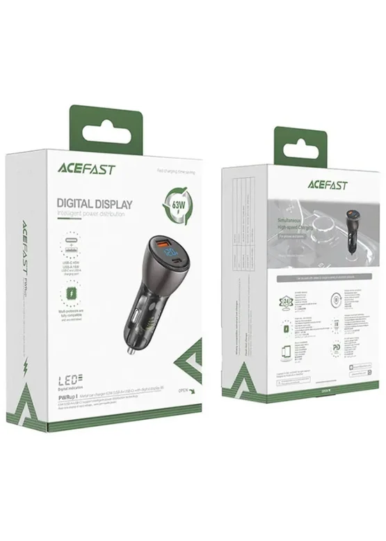 АЗУ Acefast B6 metal car charger 63W (USB-A + USB-C) with digital display Transparent black