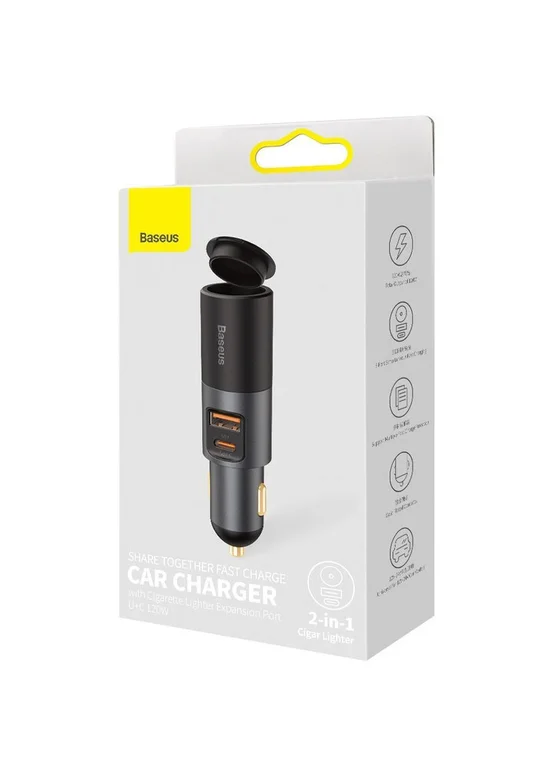 АЗУ Baseus Share Together Fast Charge with Cigarette Lighter Expansion Port U+C 120W (CCBT-C0G) Gray