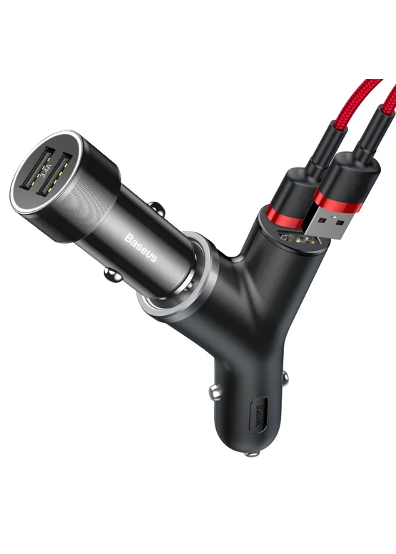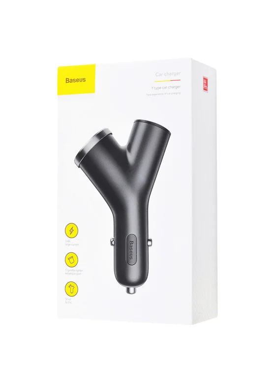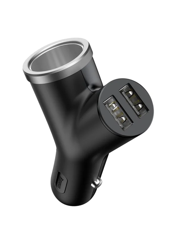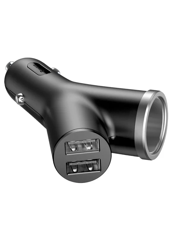АЗУ Baseus Y-Type USB + Прикуриватель 3.4A 2USB (Черный)