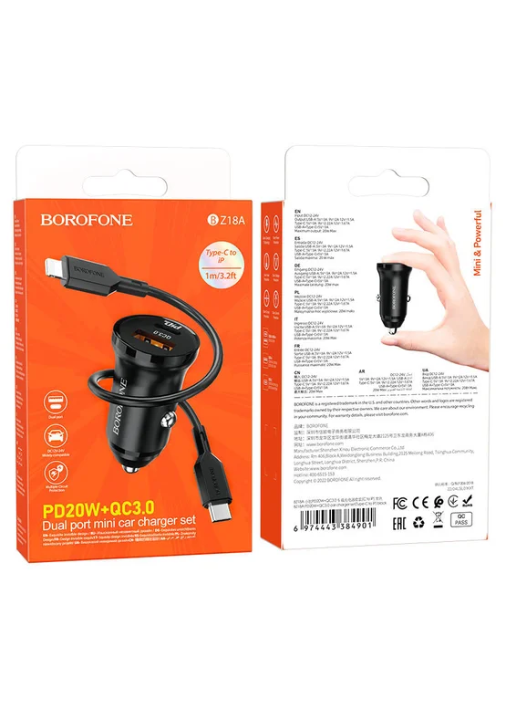 АЗУ Borofone BZ18A PD20W+QC3.0 + Type-C to Lightning Черный