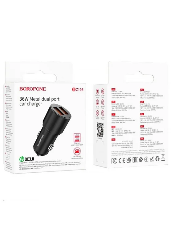 АЗУ Borofone BZ19B Metal Dual QC3.0 36W (2USB-A) Black