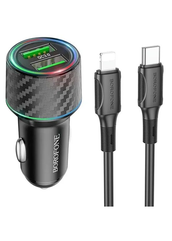 АЗУ Borofone BZ21 Brilliant 48W PD30W+QC3.0 (1Type-C/1USB) + Type-C to Lightning Black
