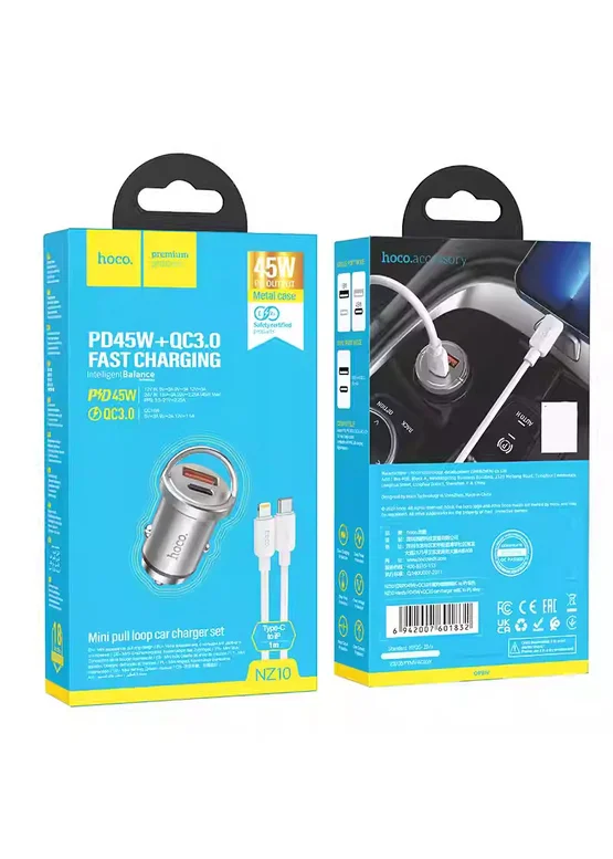 АЗУ Hoco NZ10 Handy PD45W+QC3.0 + Type-C to Lightning Silver