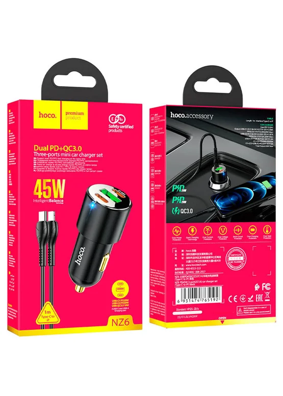 АЗУ Hoco NZ6 PD45W (2Type-C/1USB) + Type-C to Lightning Black