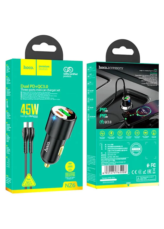 АЗУ Hoco NZ6 PD45W (2Type-C/1USB) + Type-C to Type-C Black