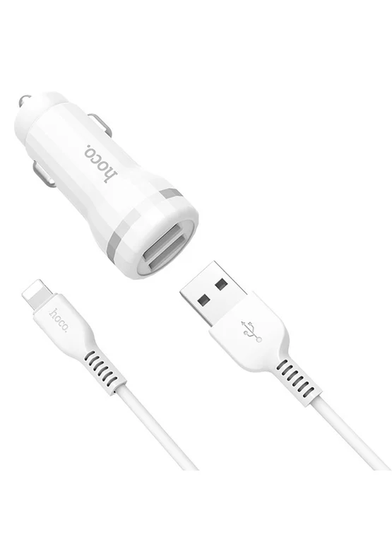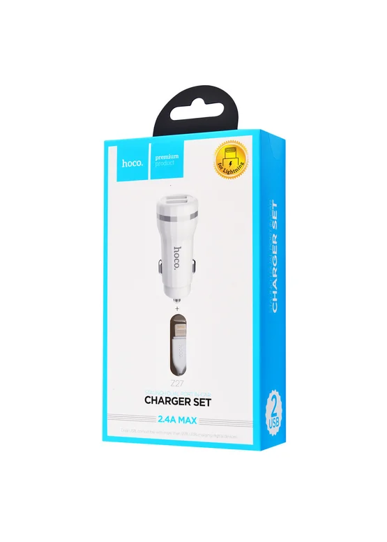 АЗУ Hoco Z27 Staunch (2USB 2.4A) (+кабель Lighthing) (Белый)