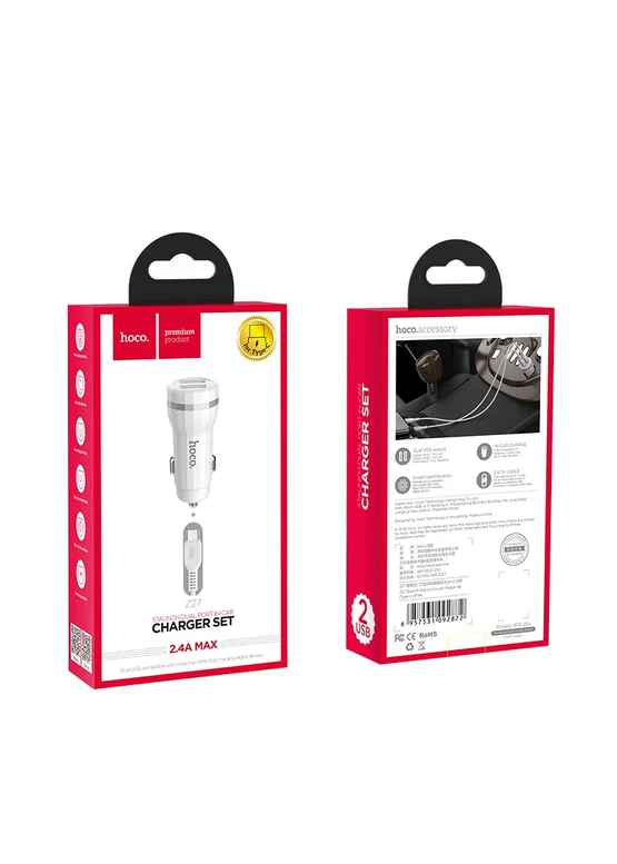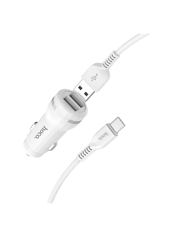 АЗУ Hoco Z27 Staunch (2USB 2.4A) (+кабель Type-C) (Белый)