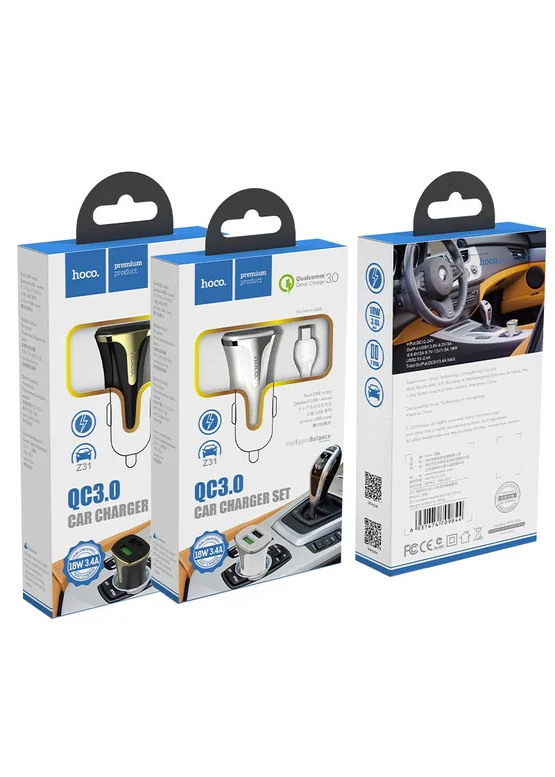 АЗУ Hoco Z31 QC3.0 (2USB/3.4A) + microUSB (Черный)