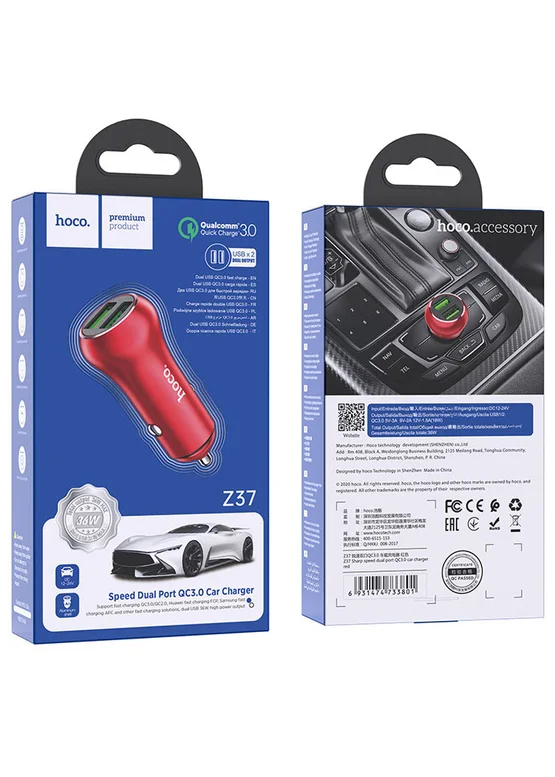 АЗУ Hoco Z37 QC3.0 (2USB) (Красный)