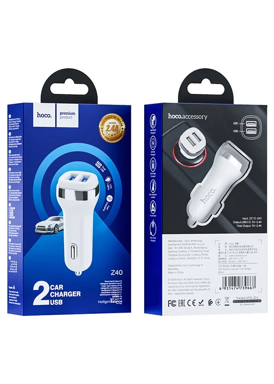 АЗУ Hoco Z40 (2USB 2.4A) Белый