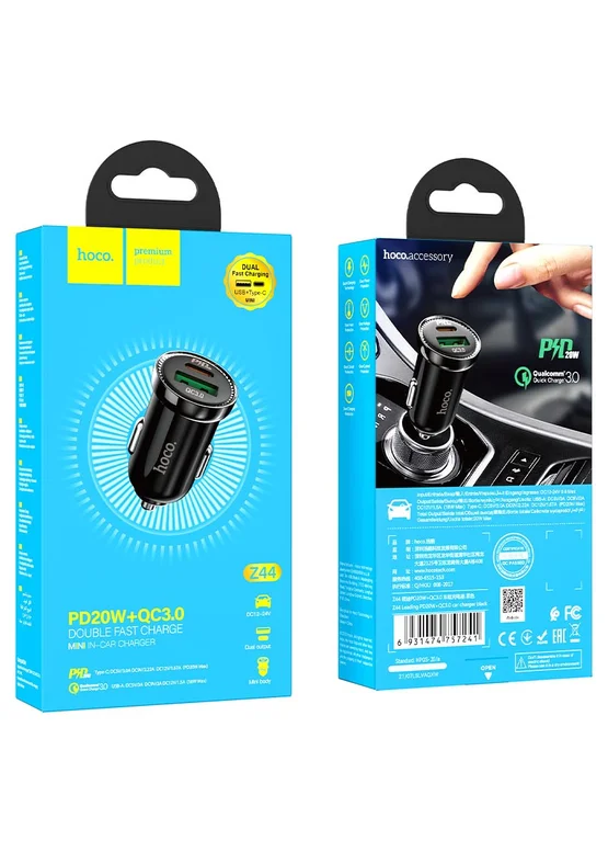 АЗУ Hoco Z44 Leading PD 20W + QC3.0 (1USB/3A) Черный