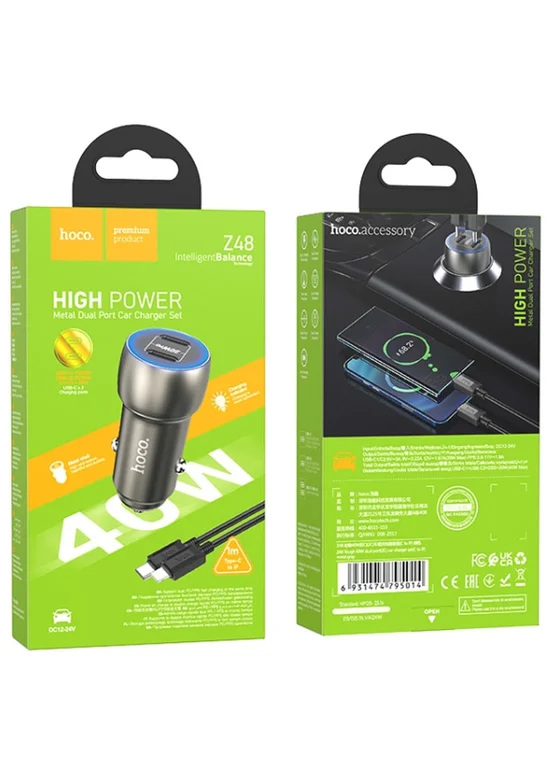 АЗУ Hoco Z48 Tough 40W (2Type-C) + Type-C to Lightning Metal gray