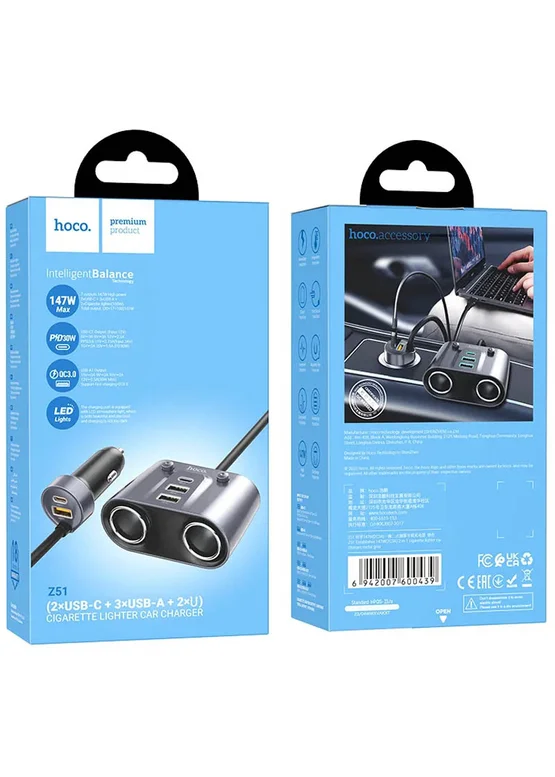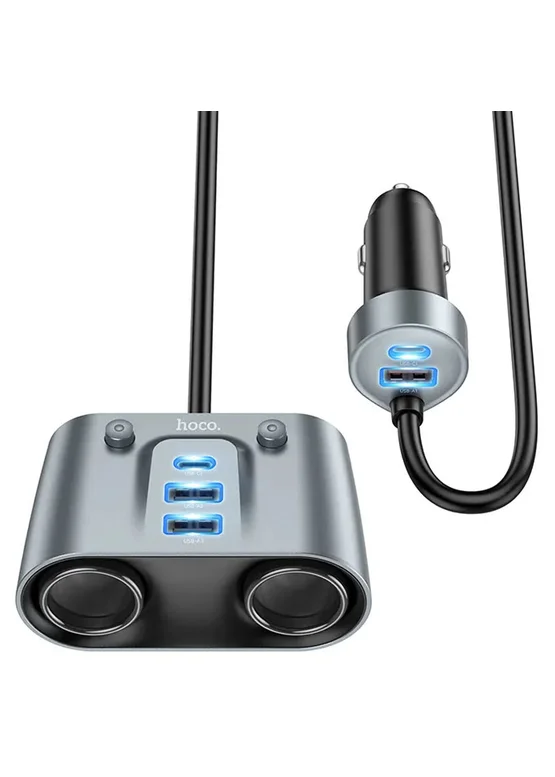 АЗУ Hoco Z51 Establisher 147W(2C3A) 2-in-1 cigarette lighter car charger Metal gray