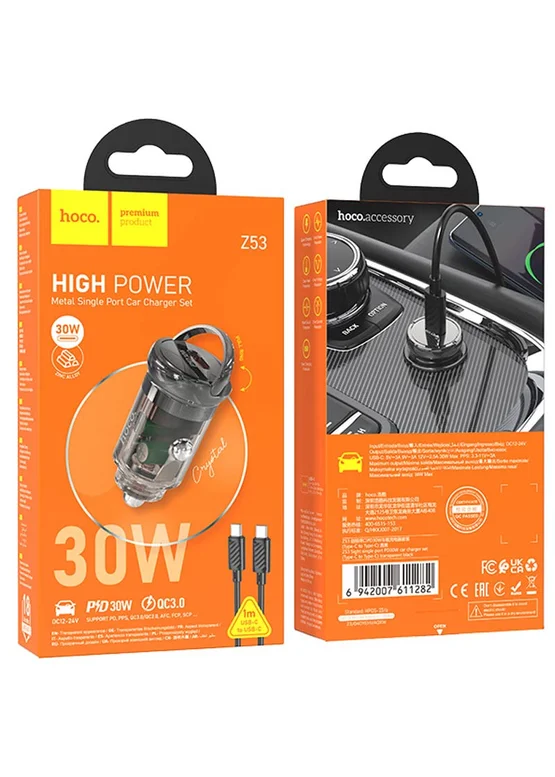 АЗУ Hoco Z53 Sight PD30W (1C) + Type-C to Type-C Transparent black