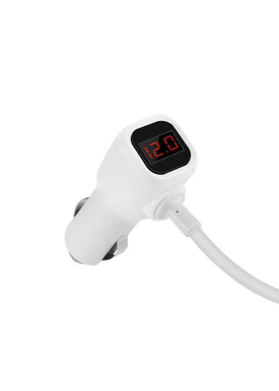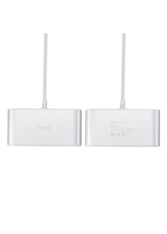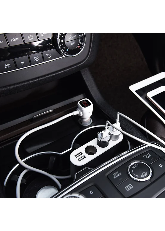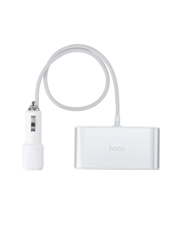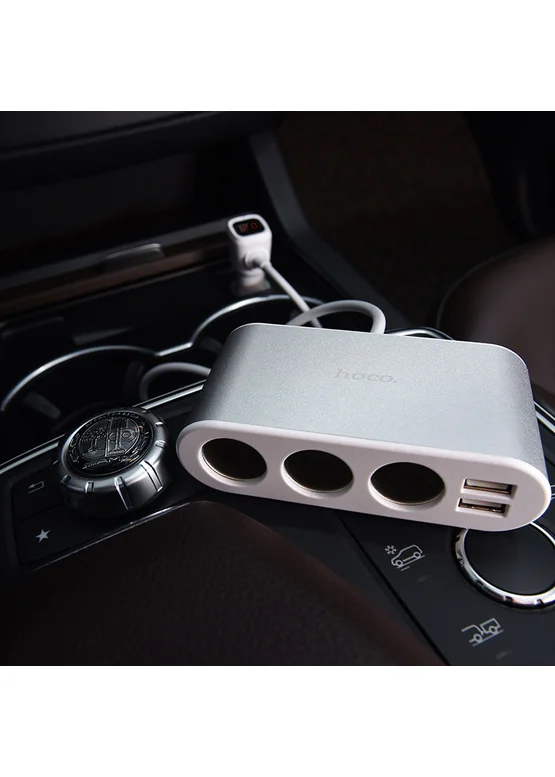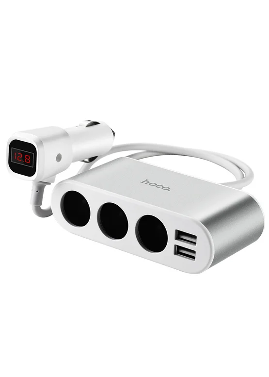 АЗУ с разветвителем прикуривателя Hoco Z13 (3 порта+2USB/2.1A+LCD) (Стальной)